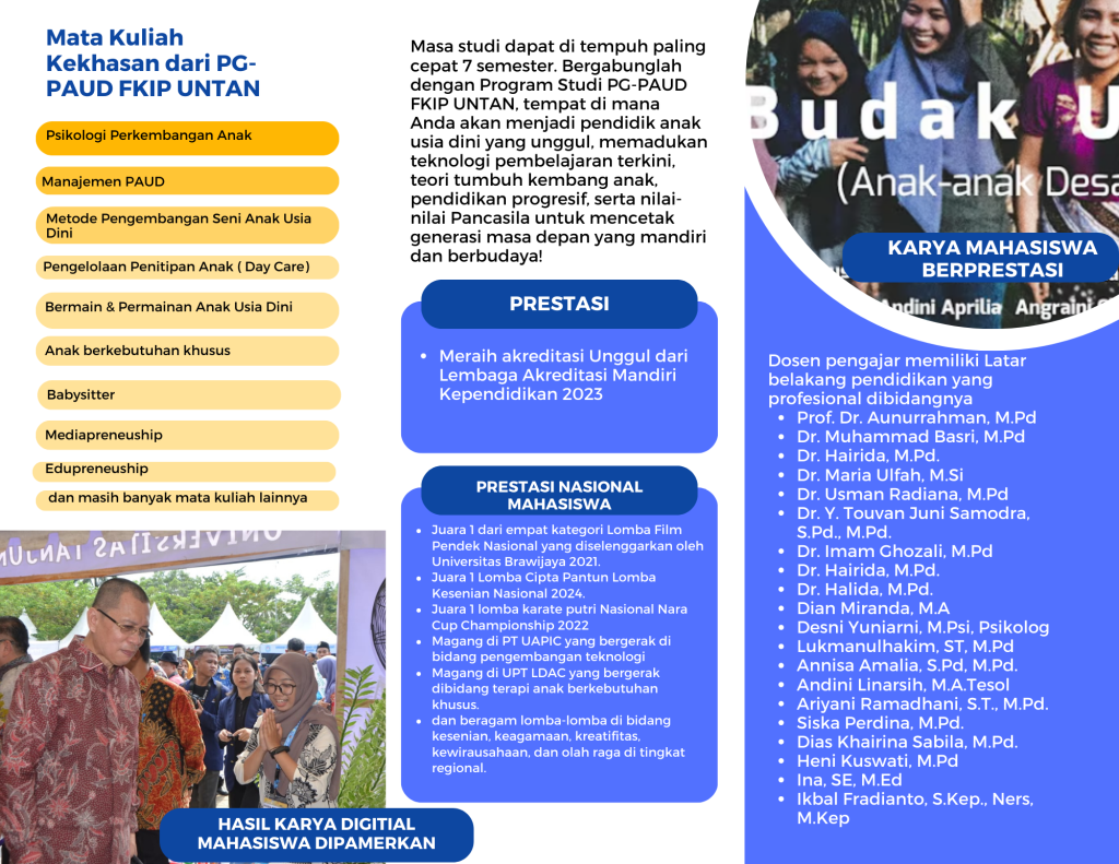 Written by admin | Posted on January 13, 2025 | Filed in Pengumuman Brosur Penerimaan Mahasiswa Baru Prodi PG PAUD TA 2024/2025 Tweet on Twitter Share on Facebook Google+ Pinterest
